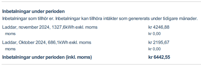 Detaljerad information om inkasserade betalningar under perioden