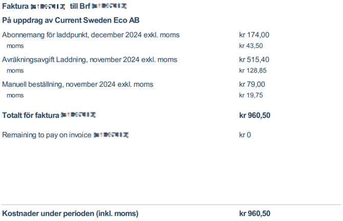 Detaljerad information om kostnader under perioden